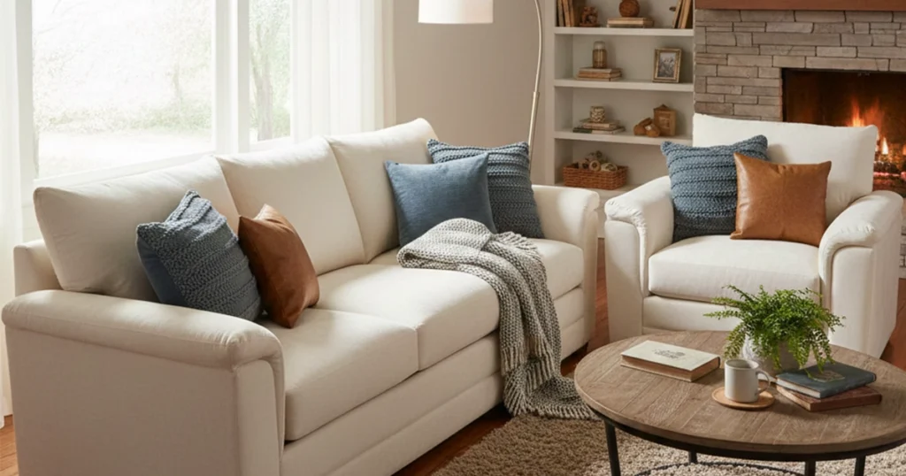 Cozy living rooms begin with seating you can sink into. Soft cushions, deep sofas, and supportive chairs help make the room feel like a place to relax. Comfortable seating encourages warmth and connection, especially when gathering with family or guests.